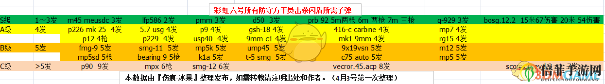 测试距离是3米之内,实际上远距离手枪和冲锋枪都有伤害削减,因为每个枪的衰减程度都不一样,所以我只测试了一少部分枪,其他都是3米之内无衰减伤害测试。