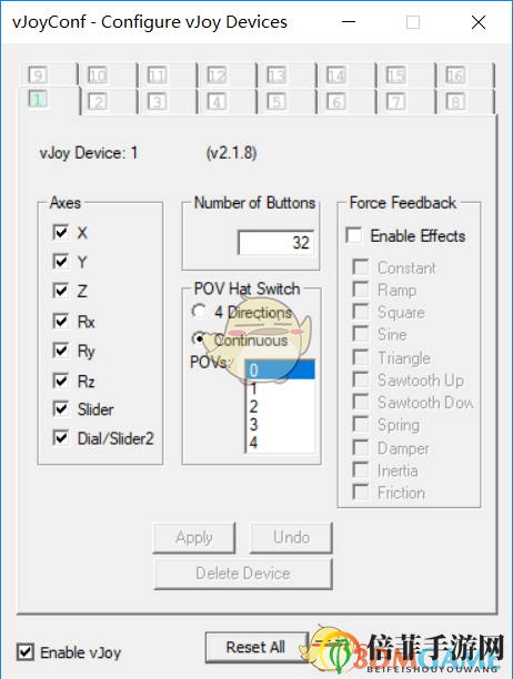 可点击“Reverse Stick Y”来解决左摇杆反转