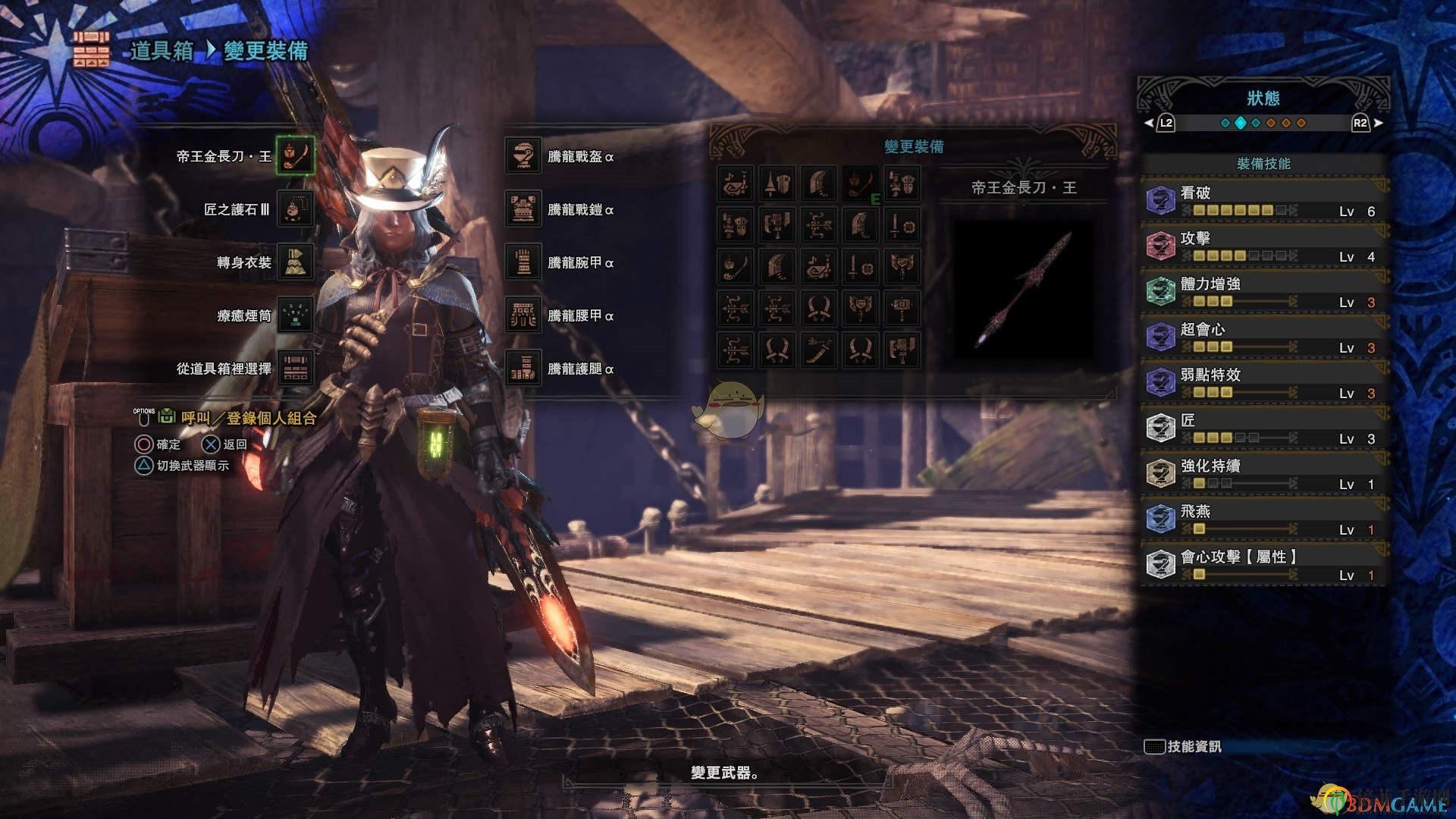帝王金长刀·王在众多操虫棍中并不算常见,其物理攻击力与炎妃冥灯相当,火属性值也不算高(270%,若考虑属加成,实际为270%X1.25=337.5%),而斩味更是不尽人意(匠3才短白斩)。然而,这把武器在火属性武器中已经是非常强大的存在,尤其在面对古代鹿首精时,其火属性优势更为凸显。