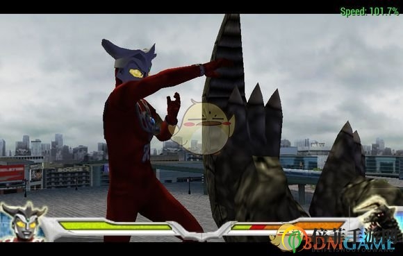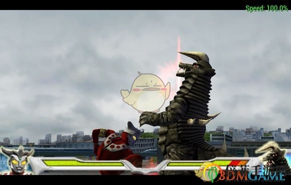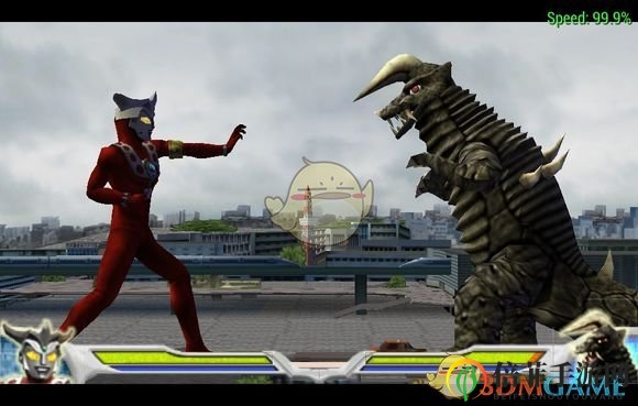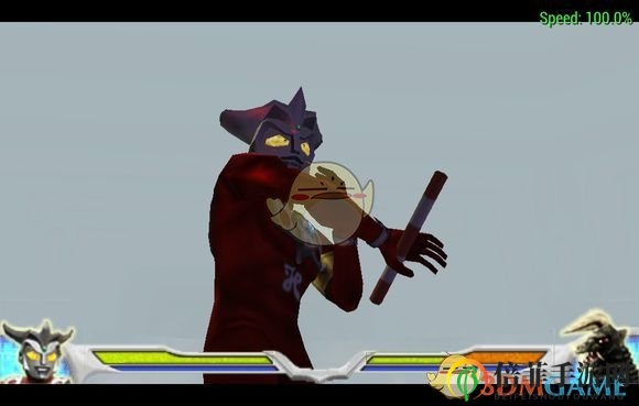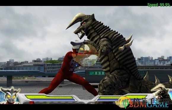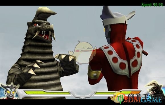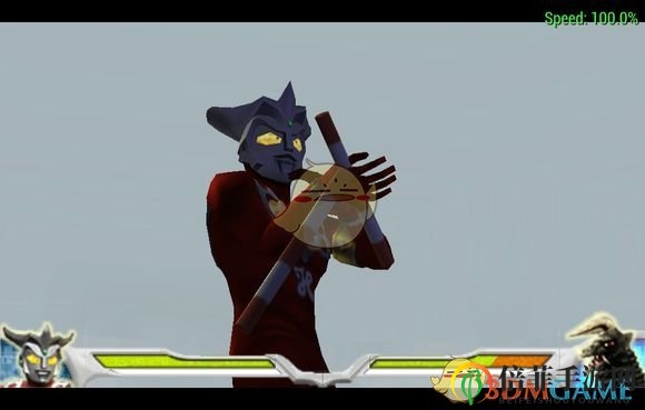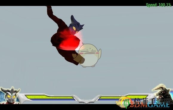 雷欧小必杀(带手刀):奥特射击+雷欧手刀(手刀的加入让小必杀威力大增,濒死时手刀一击即可砍掉对手半管血,再加上蓝色小光弹,足以造成致命一击)(图为光弹+手刀的总伤害值)(使用小必杀后再按O键,即可连上手刀)