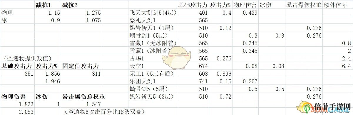 圣遗物采用新物理圣遗物,共24词条(6条攻击力,18条暴击配平)