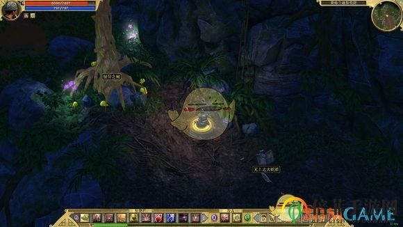 如图中所示,在亚特兰蒂斯荒野地图的某个角落,有一棵怪异之树静静等待您的探索。轻轻一点,果实便掉落下来。